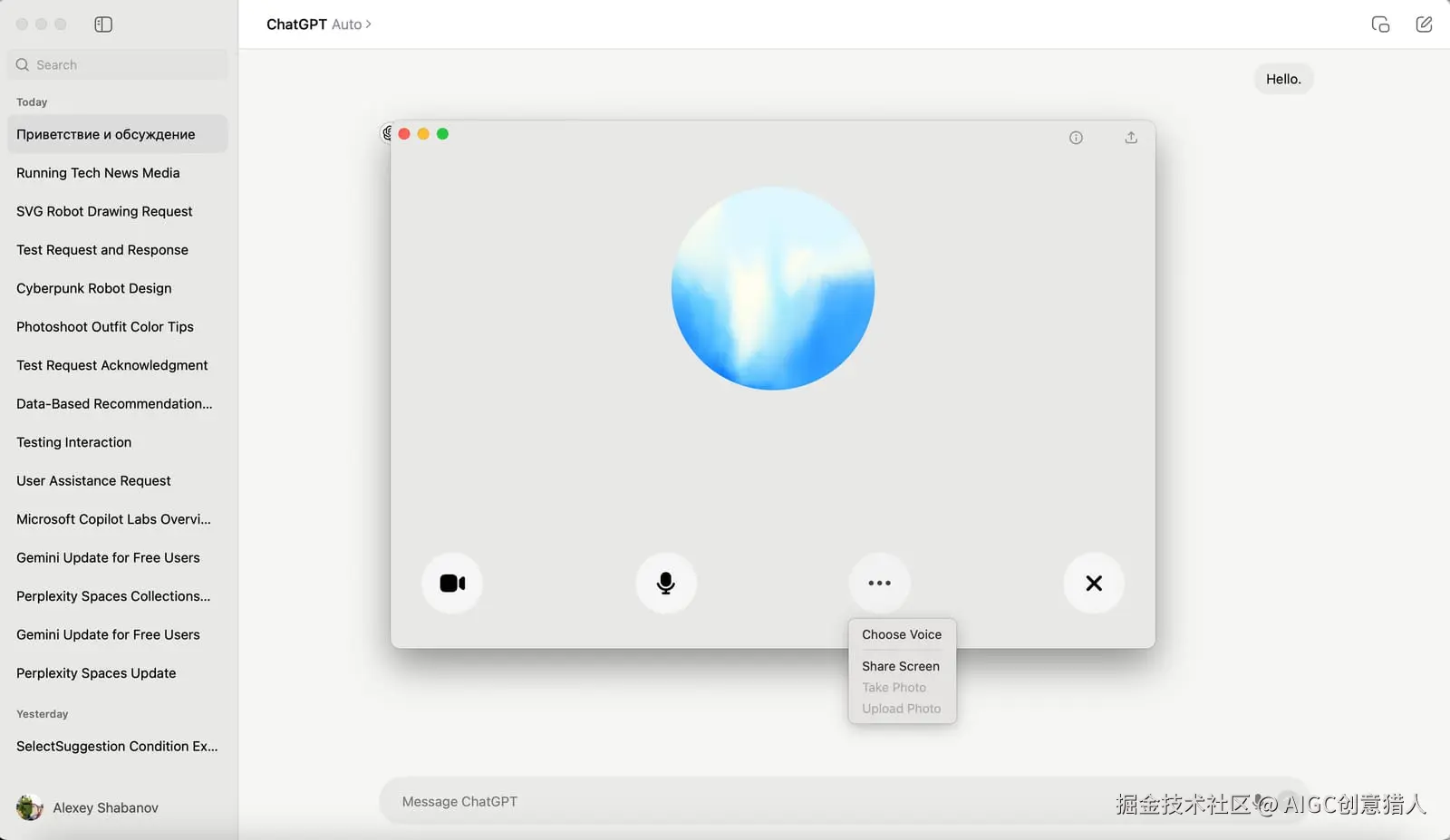 这次的更新还有一个备受关注的点,那就是ChatGPT在测试语音分享功能。虽然目前这个功能还未完全开放,但已经可以在部分地区的移动端看到这个新选项。在更新后的设置菜单中,用户会发现一个标有“新”字样的语音模式选项,点击进入后可以看到一个语音分享的界面。
