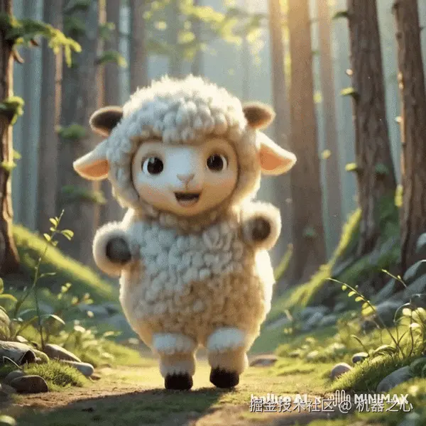 画质高清,镜头缓慢推进,毛茸茸的小羊羔蹦跶着,耳朵也有节奏地上下扇动,效果丝毫不输迪士尼动画。