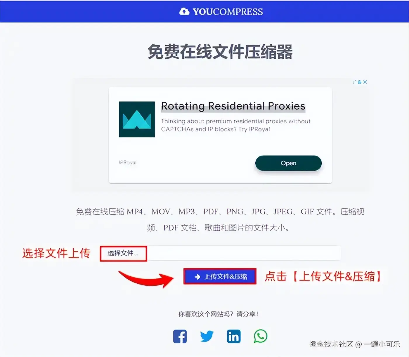 步骤1:进入You Compress网站,选择文件上传。