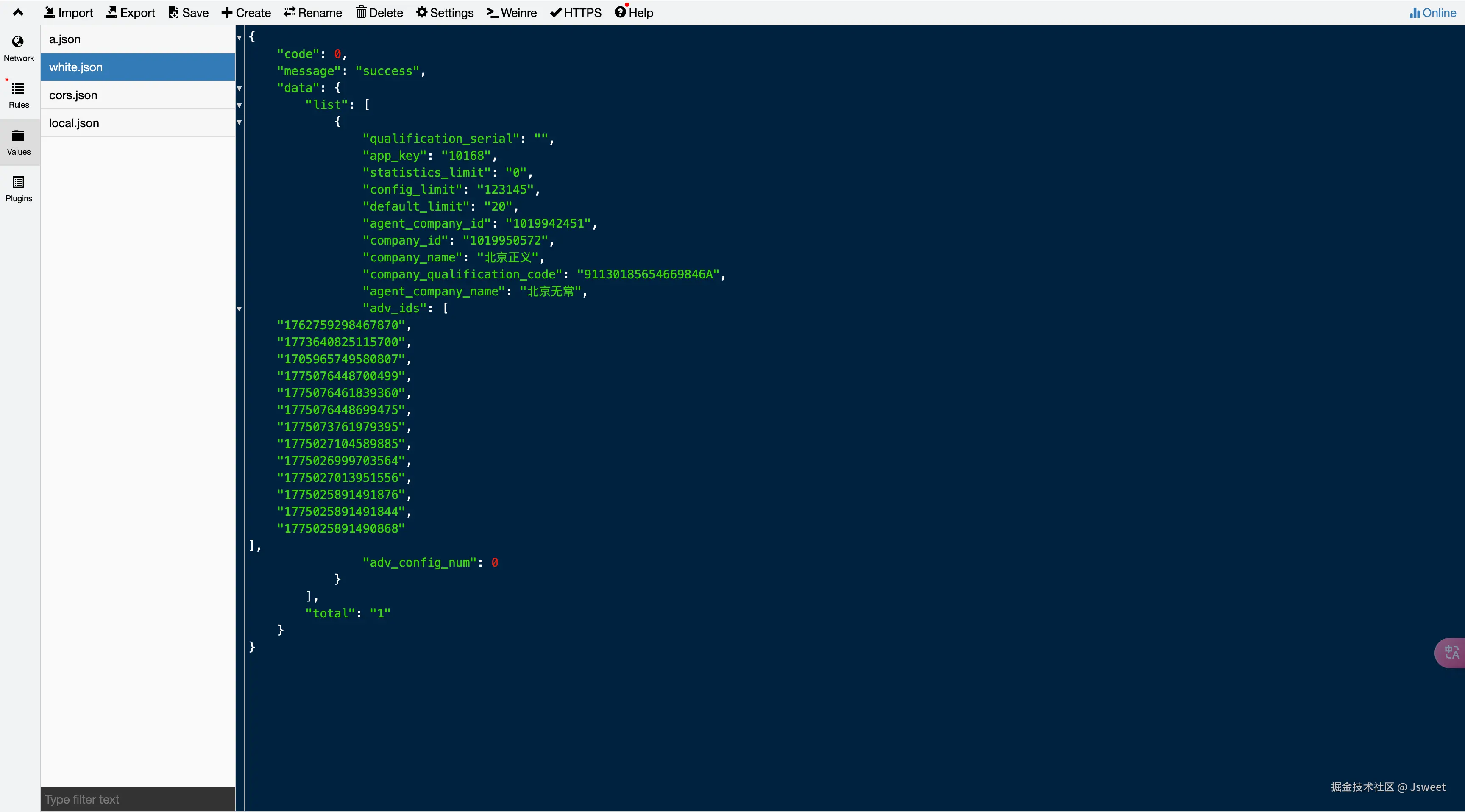 - 在values里面放好json数据
