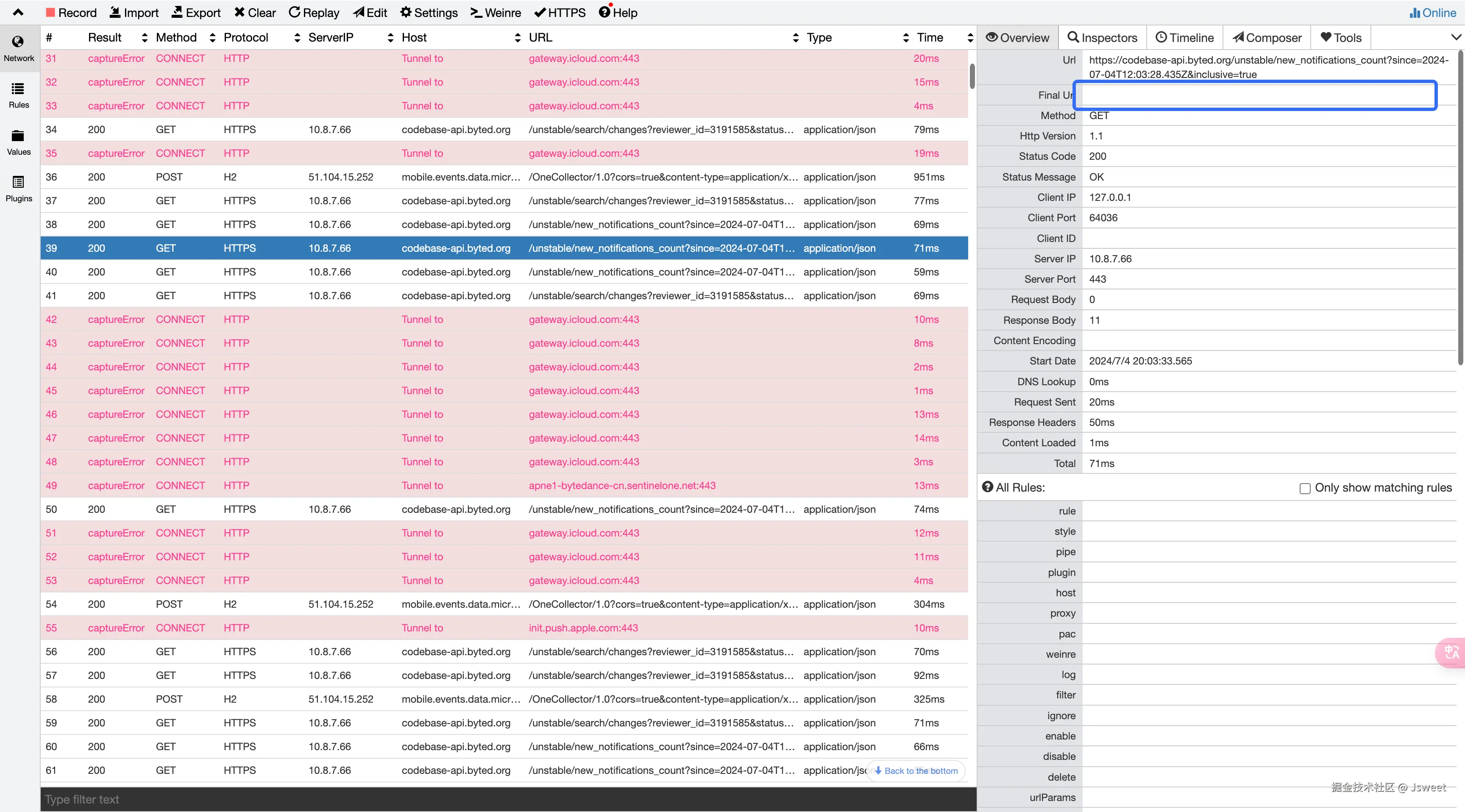 f12的network,用于查看包信息。 - rules:代理规则