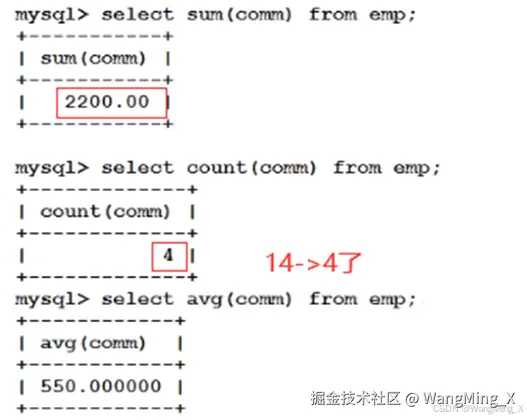 第一点:分组函数自动忽略NULL,你不需要提前对NULL进行处理。
