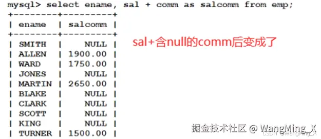 - 在所有数据库当中,只要有NULL参与的数学运算,最终结果就是NULL.
