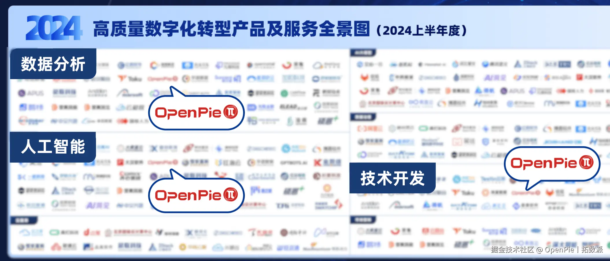 凭借在数据计算领域及 AI 领域的深厚积累和技术创新,拓数派携产品“大模型数据计算系统 PieDataCS”,实力入选 2024《高质量数字化转型产品和服务全景图》(以下简称“全景图”)“人工智能”、“数据分析”、“技术开发”三大板块, 这也是继 2023 年「云原生虚拟数仓 PieCloudDB Database」 之后,拓数派旗下产品第二次入选铸基计划。