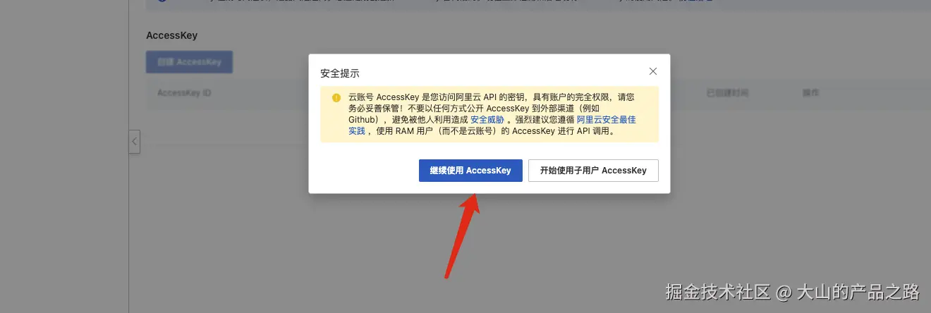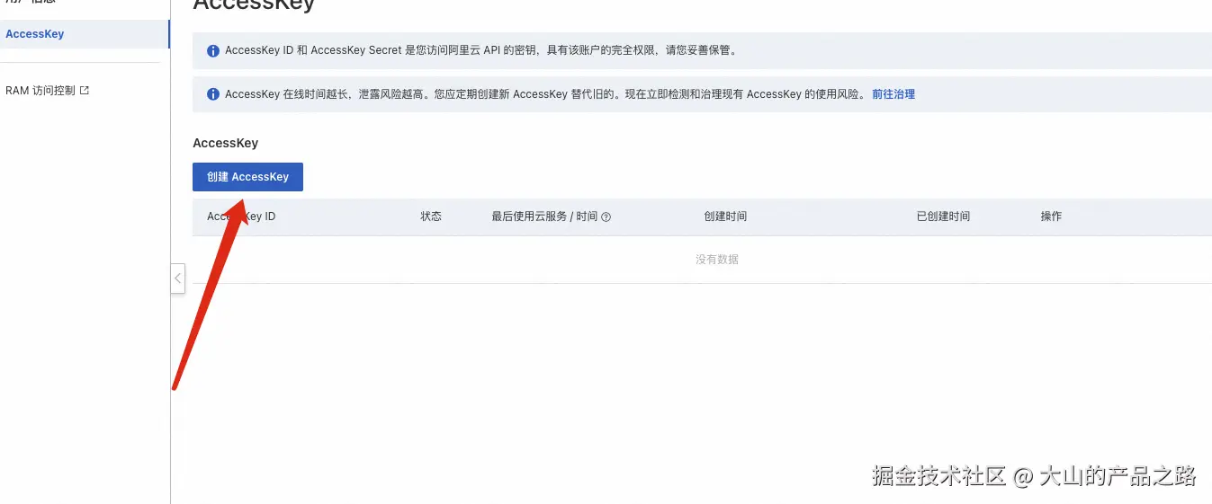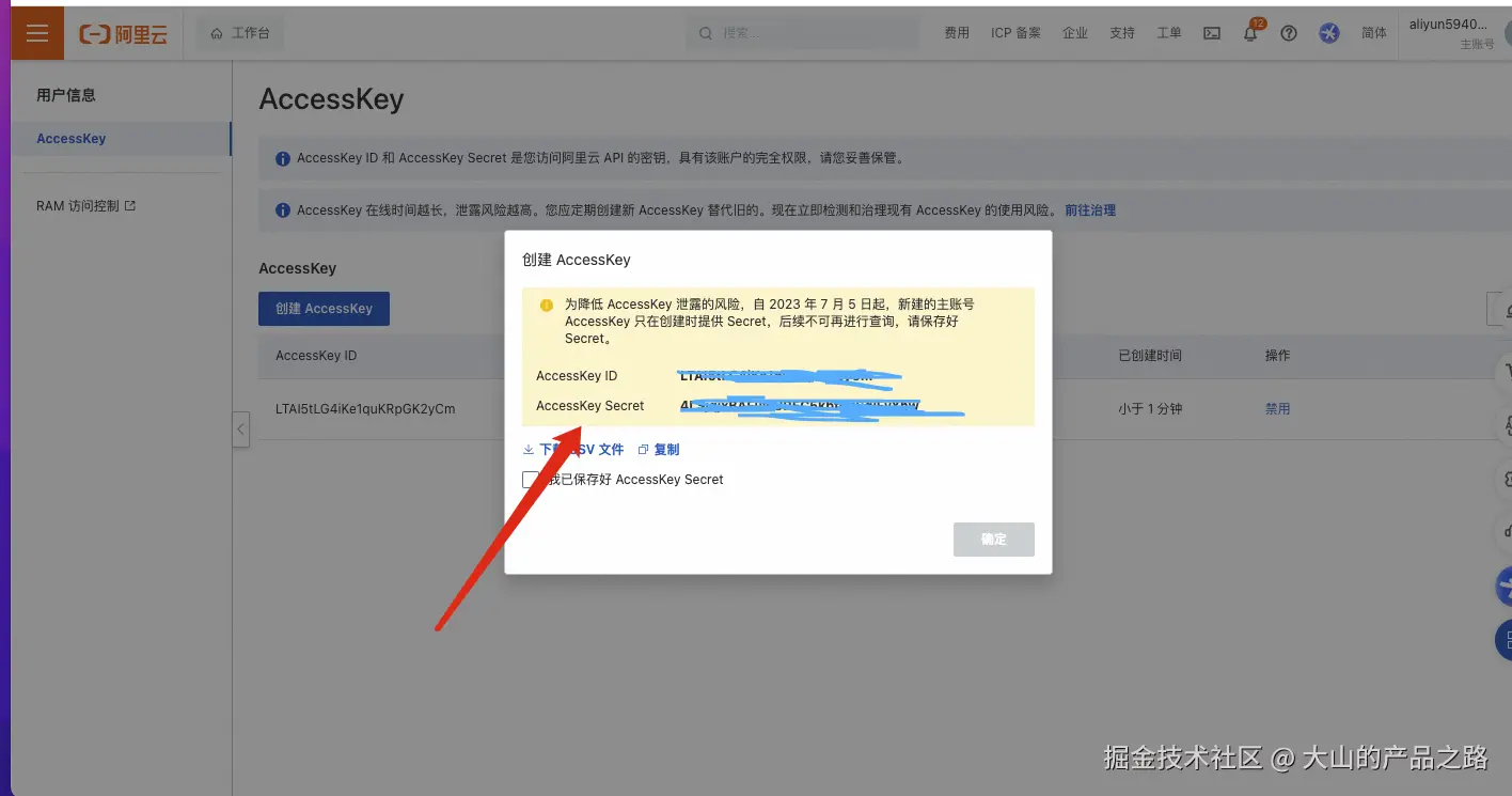 添加 AccessKey ,并且复制AccessKey ID AccessKey Secret