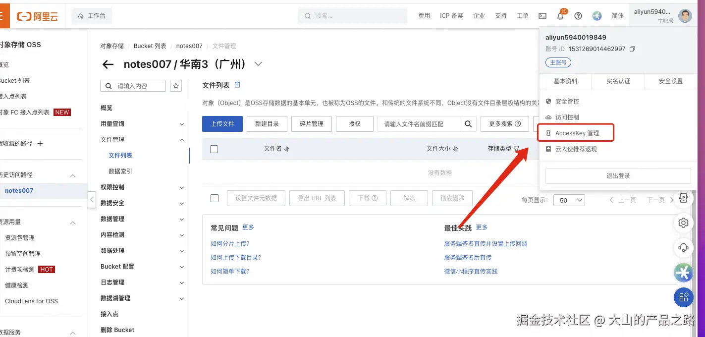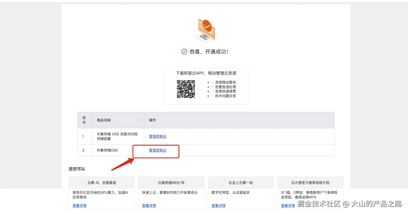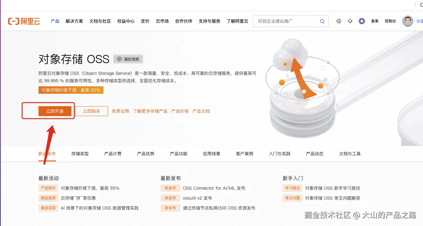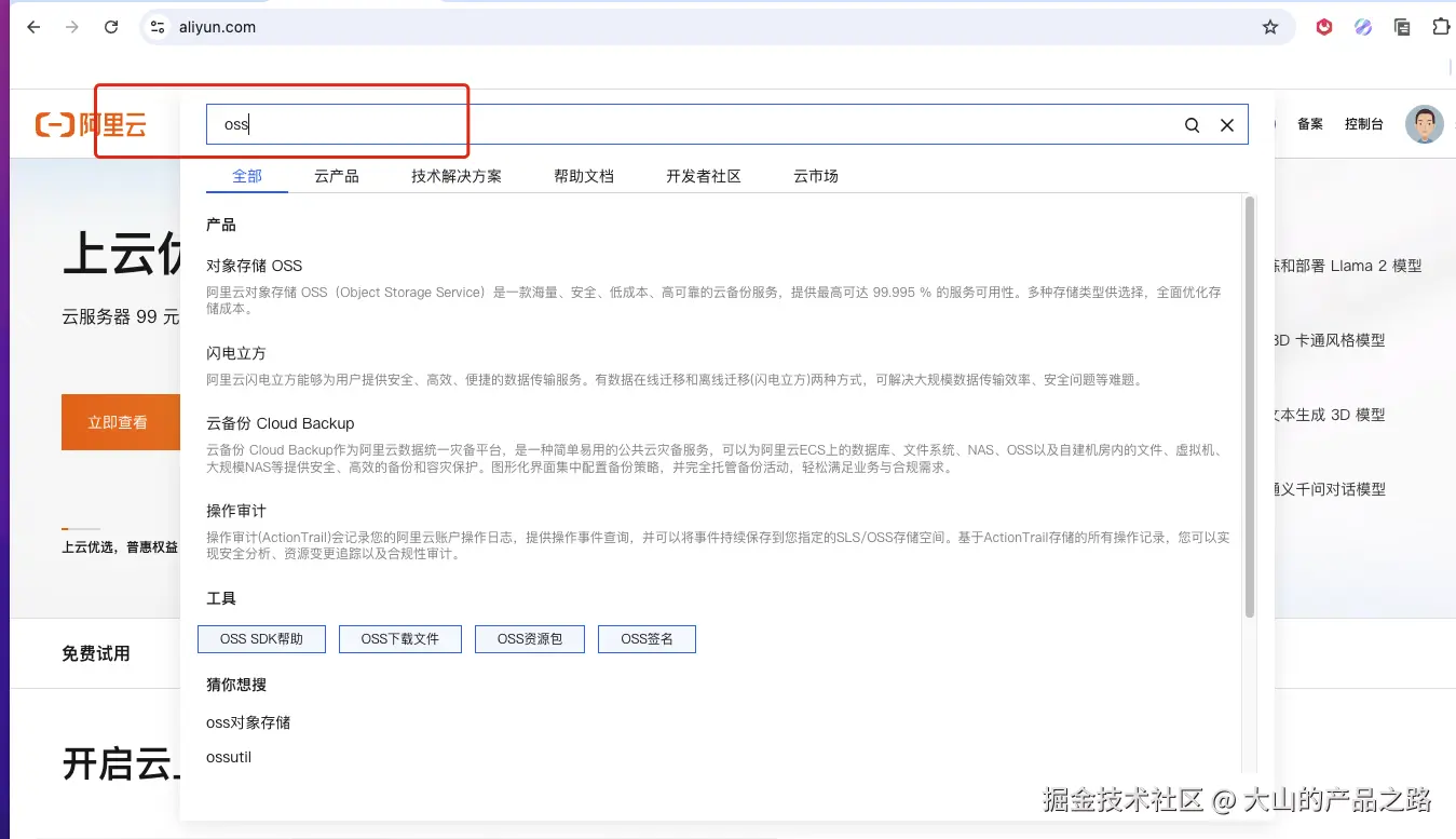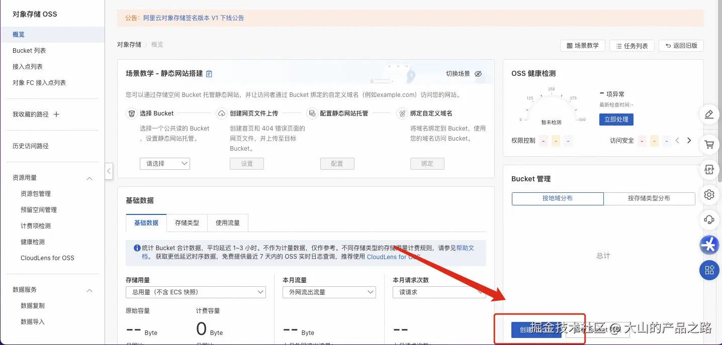 搜索OSS 并且开通进入OSS 控制台