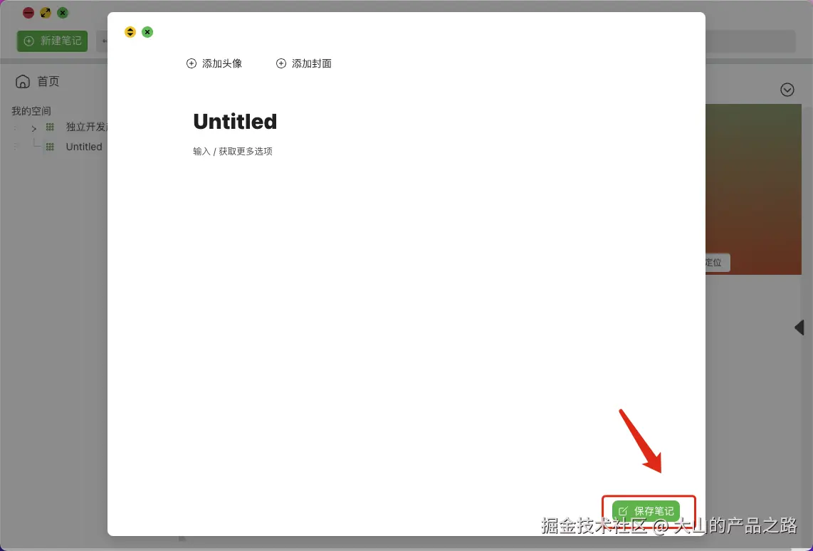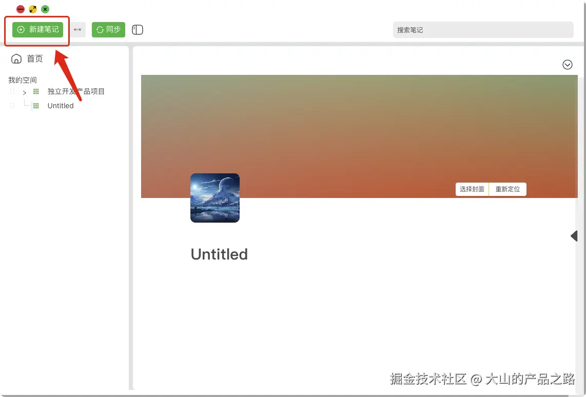 点击顶部新建笔记