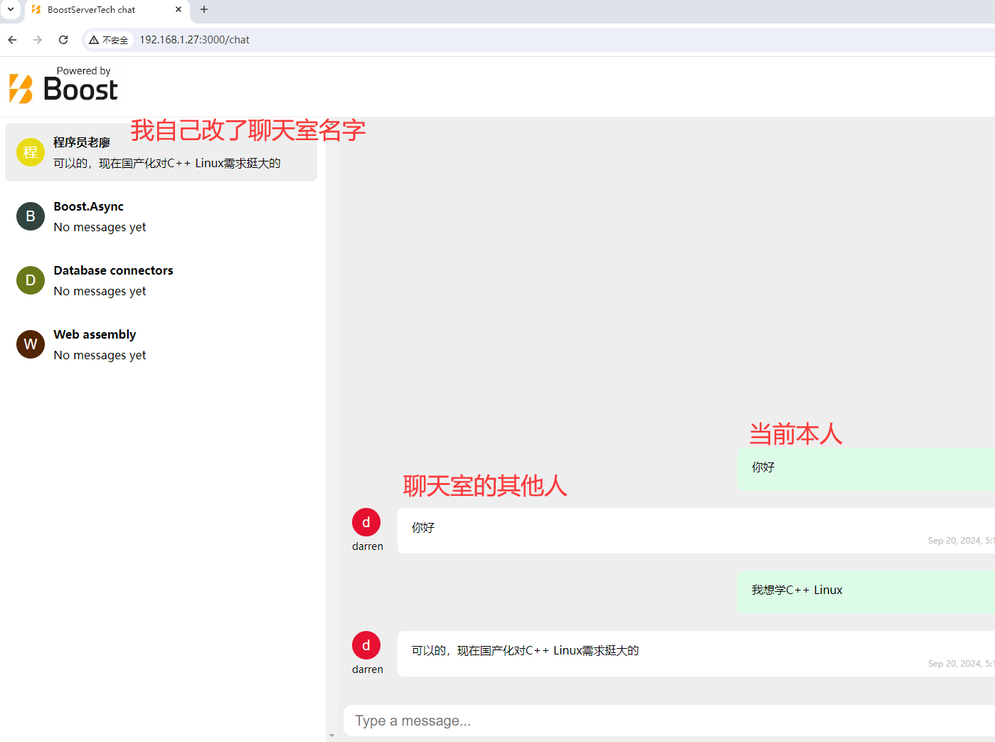 - chat_websocket_session::run() 这里负责读取聊天消息,并转发给房间里的其他人