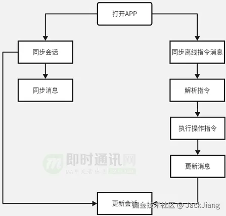 IM登录成功后,需要通过长连接SDK从服务端全量或增量同步当前用户离线阶段产生的单聊、群聊会话、消息、联系人/群成员信息等数据,更新未读数、会话中lastMsg等操作,保持用户本地和服务端远程数据一致。
