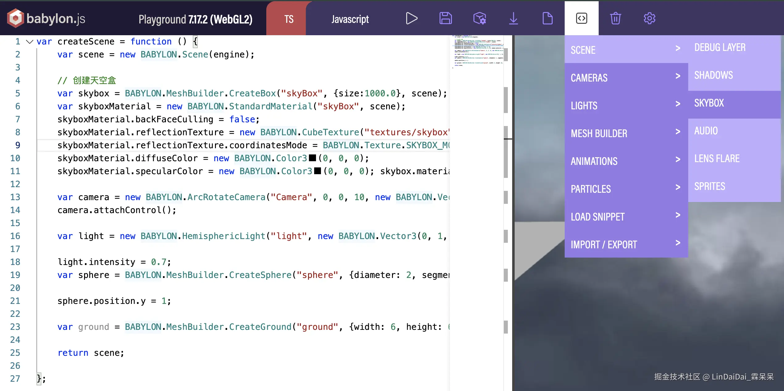 (提一嘴 babylon.js 的 playground生成天空盒的代码)