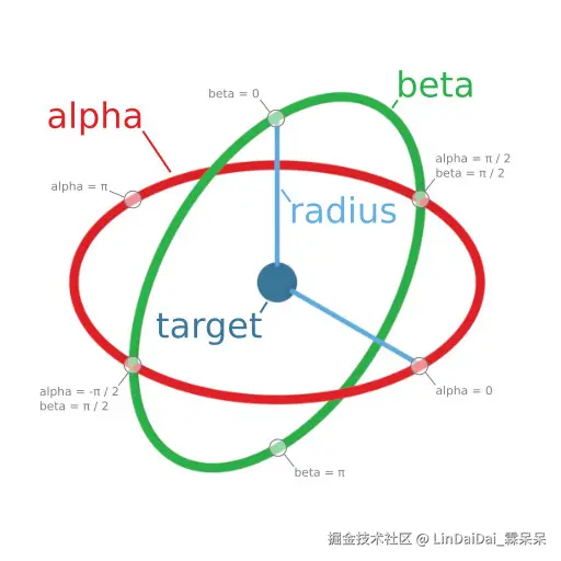 弧形相机还有一些方便且有趣的属性,例如 zoomToMouseLocation。设置它为 true 可以让鼠标滚轮以当前鼠标位置(而不是固定的 camera.tareget 位置)为中心放大或缩小。