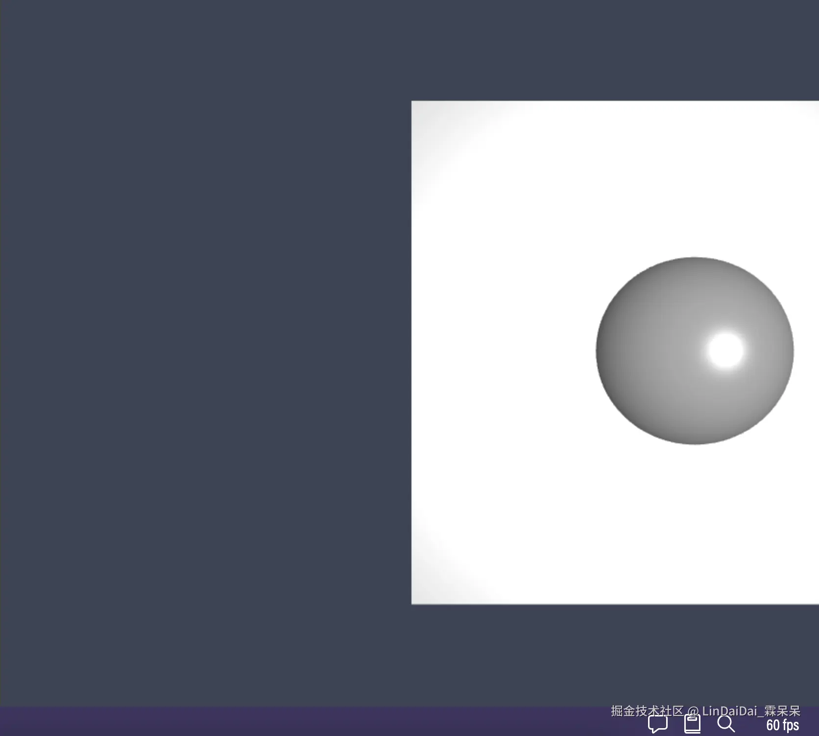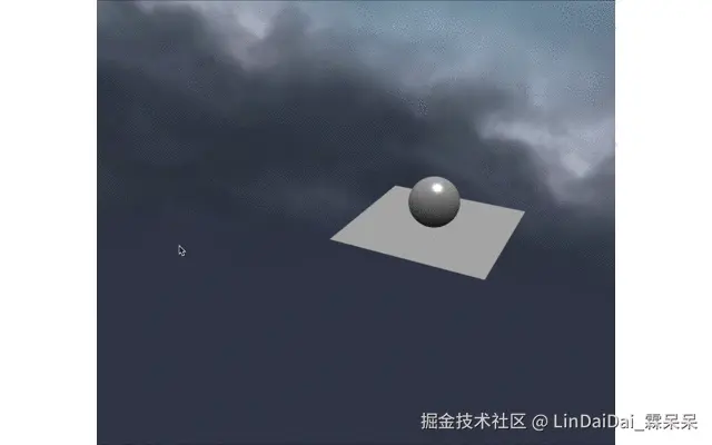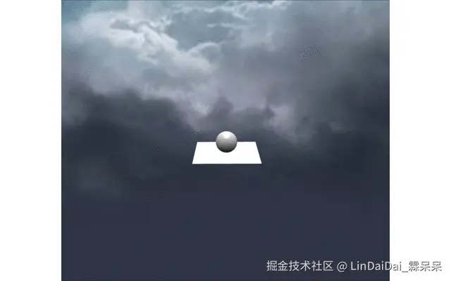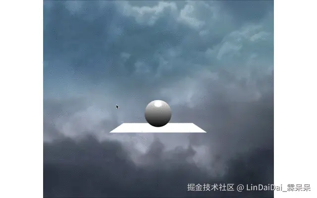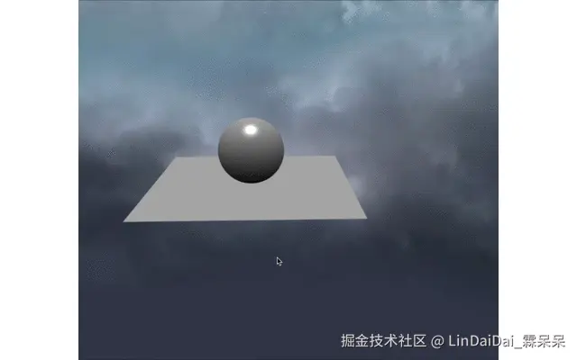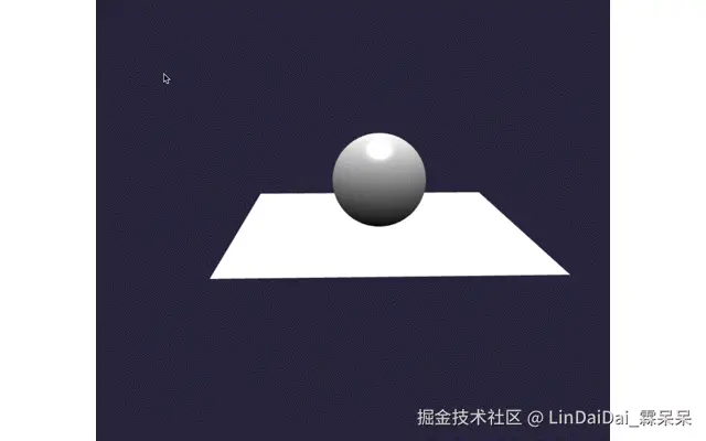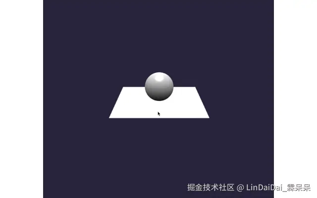 相机依旧是绕着球和地板旋转,但是球和地板已经不在整个屏幕的中心了,而是向右边偏移。