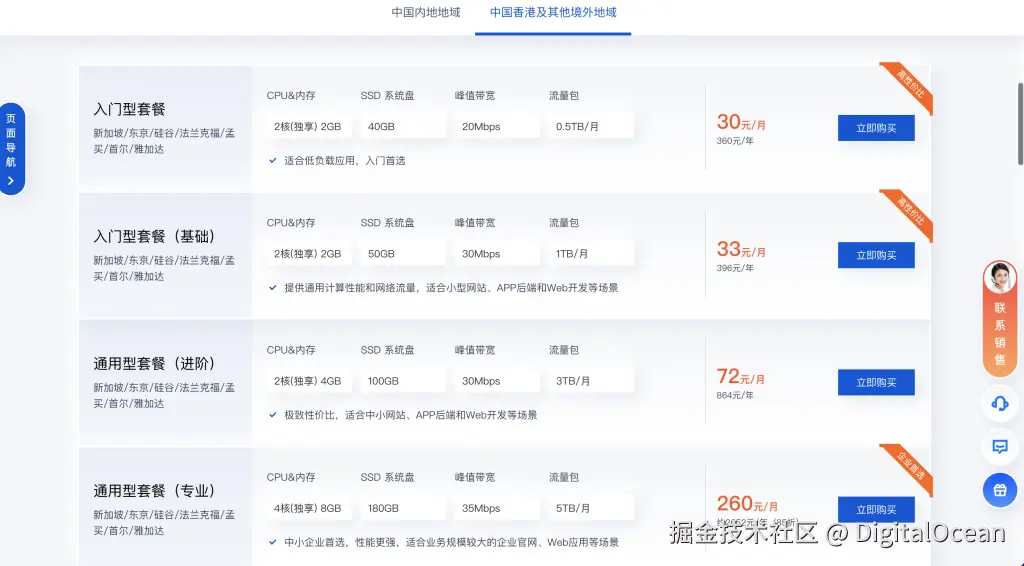 | 最高的基础配置 | 64GB 16 vCPU 1280GB SSD 硬盘 8TB 流量,如流量超额按照 0.09美元/GB计费 | 8GB2 vCPU200GB SSD5TB 流量,超额计费规则同上 | 8GB4 vCPU180GB SSD5TB 流量,超额计费规则同上 | Premium Intel Droplet32 GB 8 Intel 较新一代 CPUs640 GB NVMe SSDs10 TB 流量,如流量超额按照 0.01美元/GB计费 | 32 GiB RAM8 个 vCPU640 GB SSDs无免费流量 |