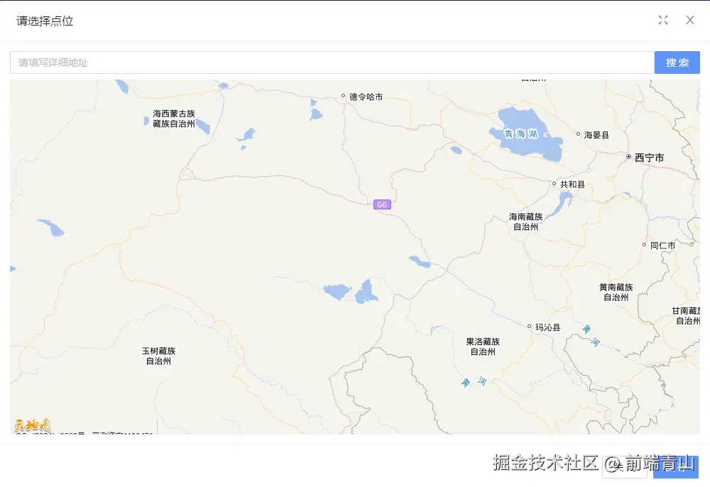 - 组件提供了一个搜索框,用户可以输入地址,通过点击搜索按钮来搜索对应的坐标,并在地图上标记。
