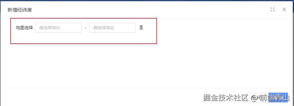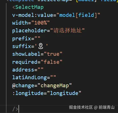 这段代码是Vue的一个模板,用于渲染一个包含地图模态框和两个输入框的表单项。其中: