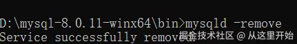 3、回到cmd命令窗口,输入mysqld -remove