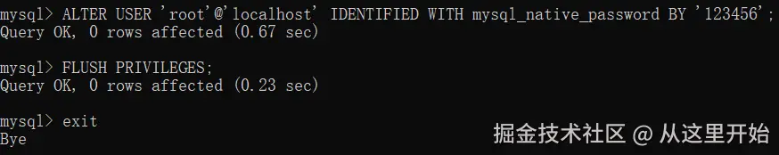 mysql> ALTER USER 'root'@'localhost' IDENTIFIED WITH mysql_native_password BY '123456';