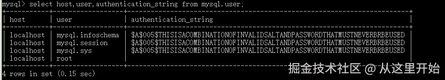 查询用户密码命令:mysql> select host,user,authentication_string from mysql.user;