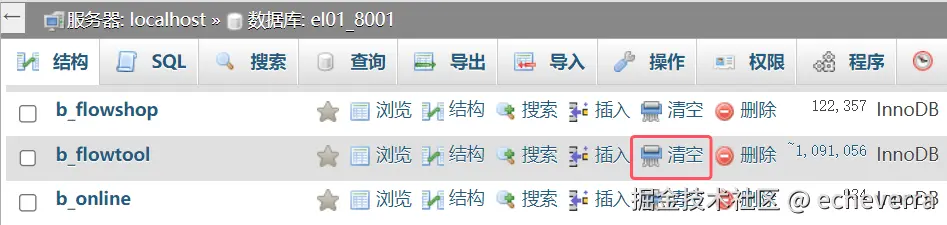 不过这还不是最占硬盘的,运行一段时间后数据库: el01_8001表b_flowtool会变得超级大,这是个类似日志 log 记录的表,经测试可以清空不影响游戏。