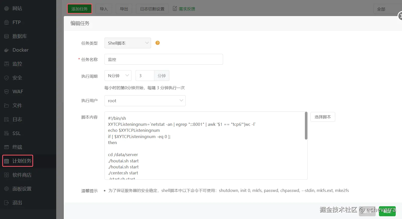 担心游戏掉线或者服务器重启,我们可以宝塔创建一个定时任务来监控游戏,异常时自动重新启动游戏: