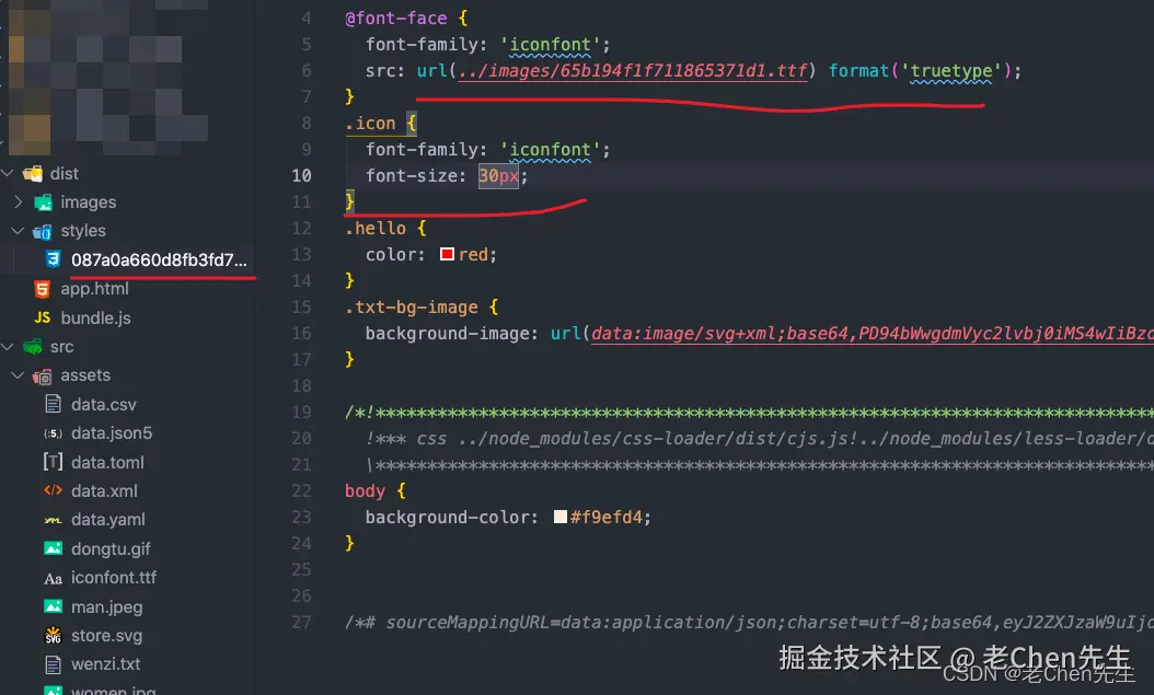 在CSS3中增加了一个webfont, 我们可以在css中加载一个font字库,这样就可以在代码中定义icon图标了,这里我们需要用到前面的Asset Modules 资源模块,资源模块可以帮助我们加载任何的资源类型
