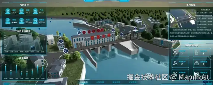 服务器端处理:服务器端负责处理数据的获取、处理和渲染,通常使用一些服务器端的3D可视化框架或引擎,如three.js、Cesium.js、Mapmost等。