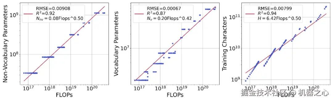 , 都和 FLOPs 保持同样的放缩比例。通过拟合,本文得到了以下幂律关系: