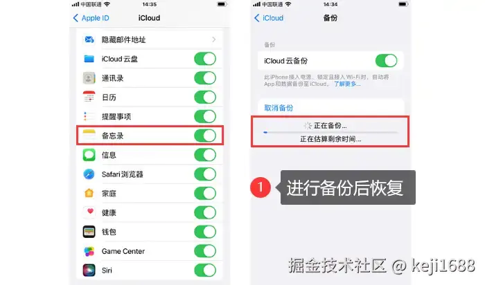 如果你定期使用iCloud备份手机数据,那么iCloud找回永久删除的备忘录变得容易多了。不过,需要注意,这种方法会恢复整个备份时的手机状态,可能会覆盖当前手机上的一些新数据。具体步骤如下:
