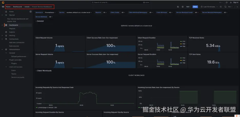 同时,为 Kmesh 适配的 Grafana 插件也已添加,以便更好地可视化各维度的监控指标。此外,可观测性方面的一些关键问题已得到修复,有效提高了其准确性和稳定性。