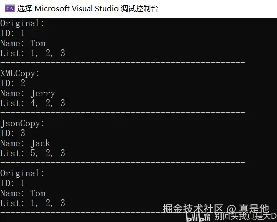 Console.WriteLine($"List: {string.Join(", ", deepCopyJson.List)}");