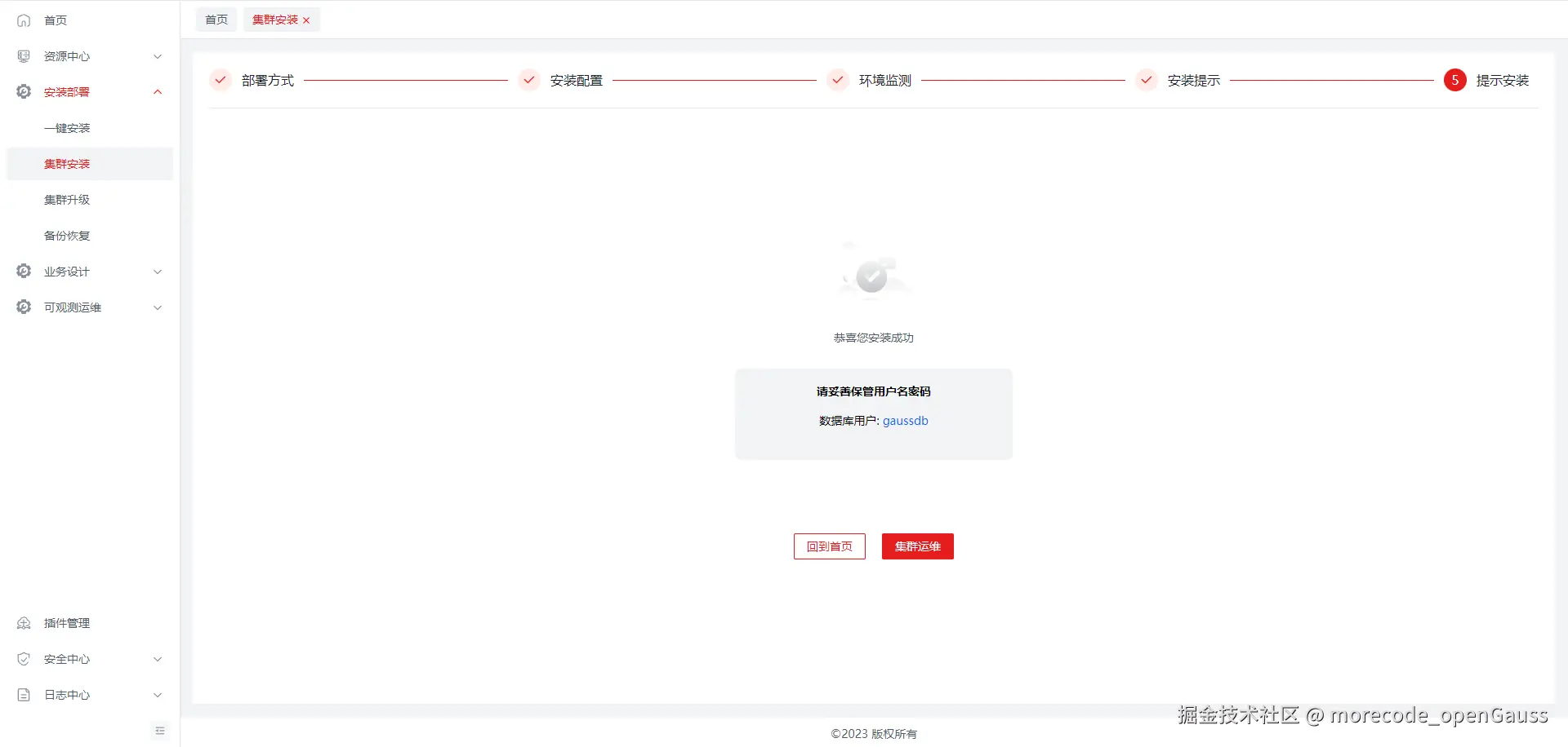 安装成功后,点击下方【集群运维】按钮即可跳转到集群运维页面,进行集群运维管理。