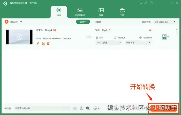 第四步:点击界面右下角的【开始转换】,转换完成后,MP4就转换成GIF啦。