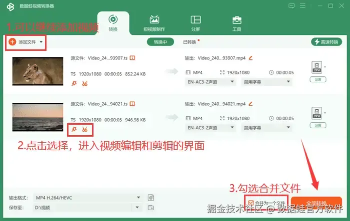 除了单纯的合并视频,用户通常还会有剪辑、裁剪、添加水印等视频编辑需求。以ts文件合并转换mp4为例子,本文将为大家分享数据 蛙如何合并并转换视频。