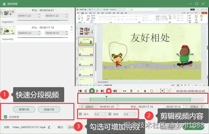 3、强大的编辑功能: 软件提供了丰富的后期编辑工具,可以对录制的视频进行剪辑、添加特效等处理,使微课视频更加生动有趣。