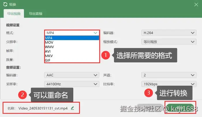 步骤4:想要将微课视频以不同的格式分享到更多的平台上,我们可以在【历史记录】页面选择【转换】选项进入,对视频进行格式转换再保存,以便您的下一步操作与分享。