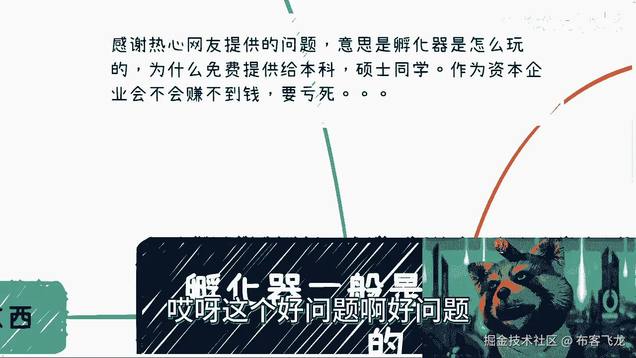 我也很久没听到这个词了,他说热心网友是这么说的,他说呃孵化器是怎么玩的对吧,为什么免费提供给本科硕士的同学啊,作为一个企业家,作为一个资本企业会不会赚不到钱,要亏死是吧,哎呀这个好问题啊。