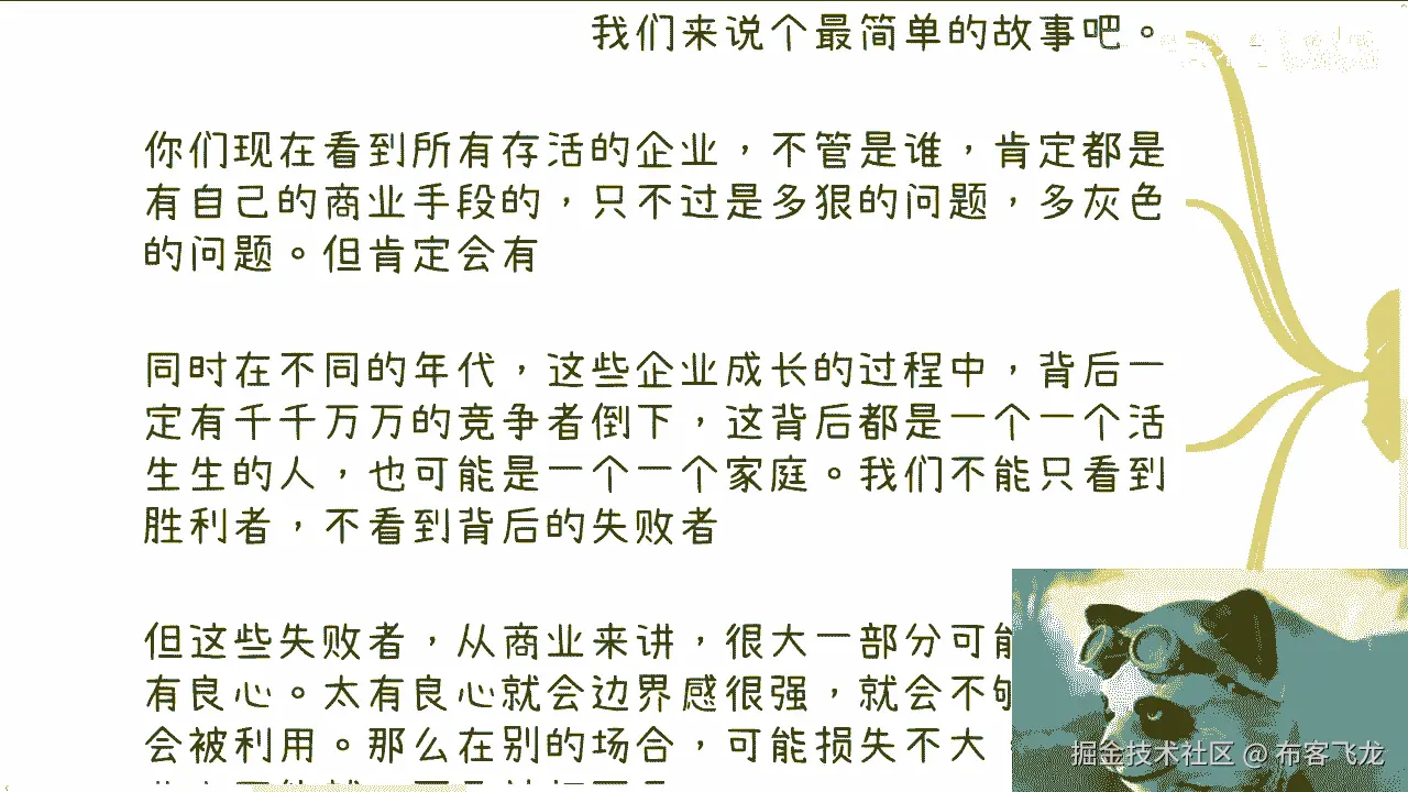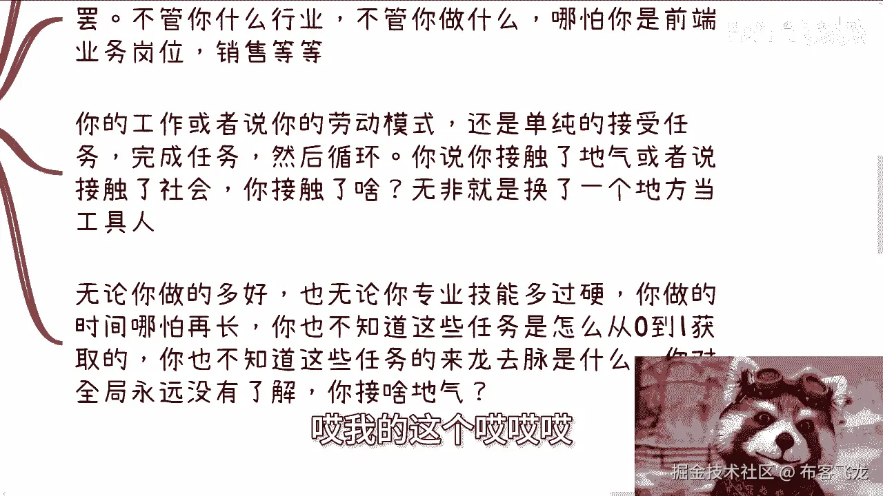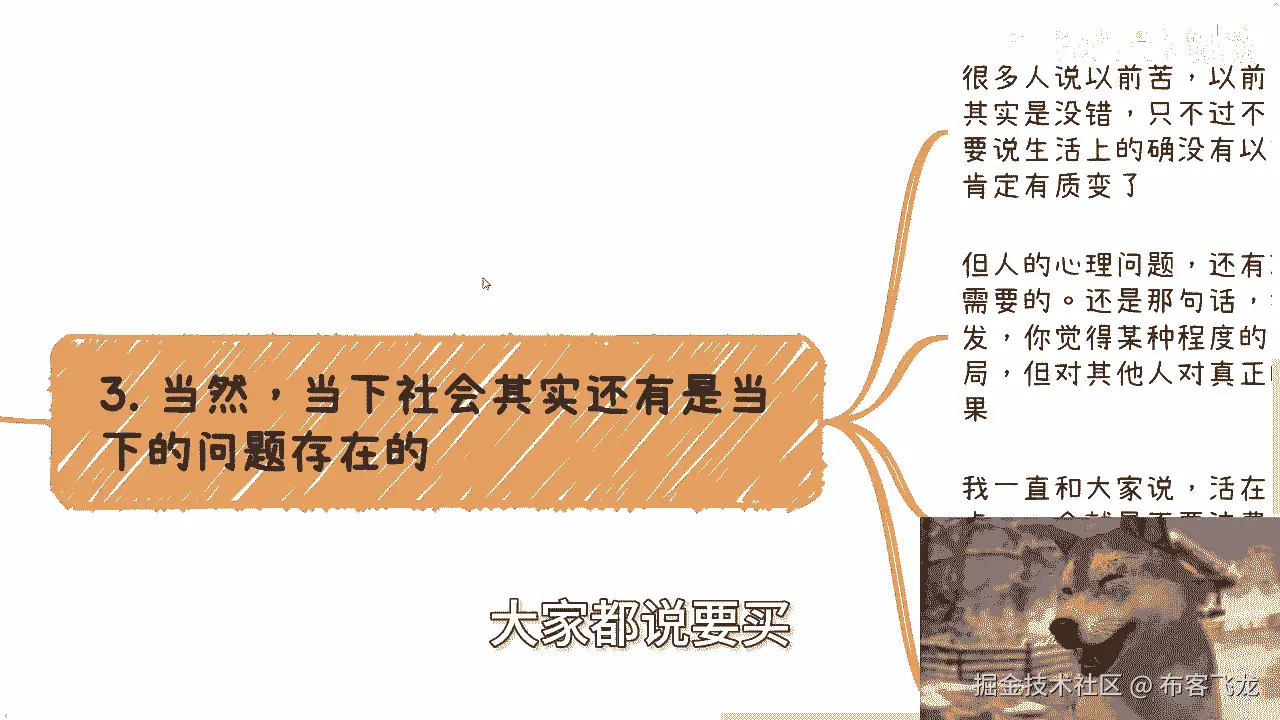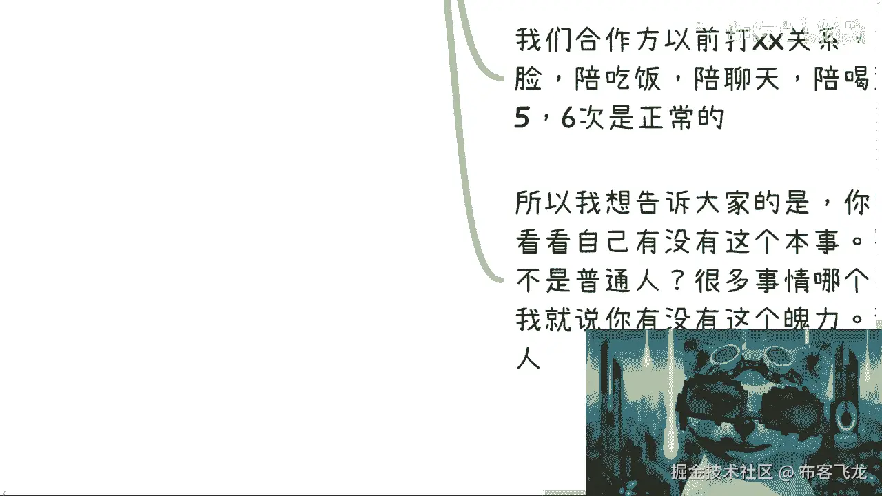 就代表我可能还那么有保有保有我的初心,跟保有我的良心,对不对,但是同样的我也不是那么有良心,我但凡是一个非常情怀化,有良心的人,那我早就被这个社会弄死了对吧,我也活不到今天,可能早就抑郁症。
