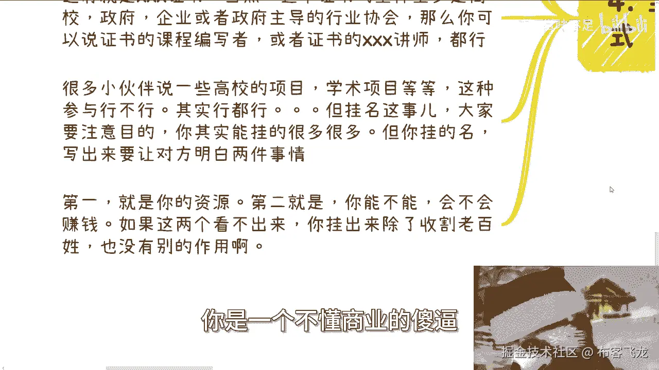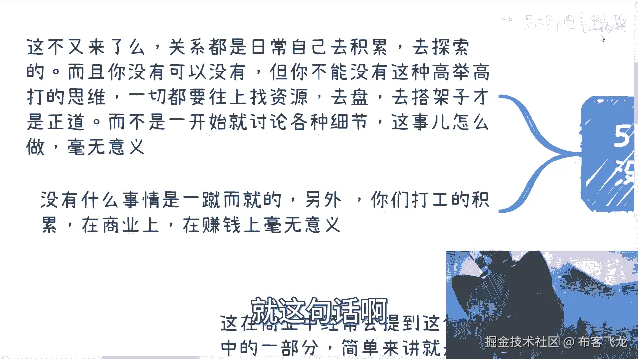 你知道吧啊那么第四个,比如说我们话又说回来对吧,就是虽然啊你说知识变现,你懂得要变现对吧,知识不重要,但是呢你该做的样子还是要做的什么意思呢。