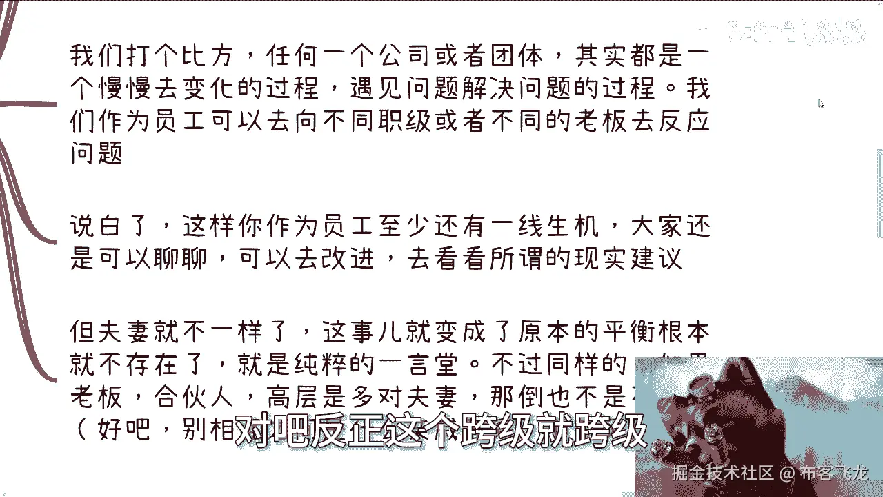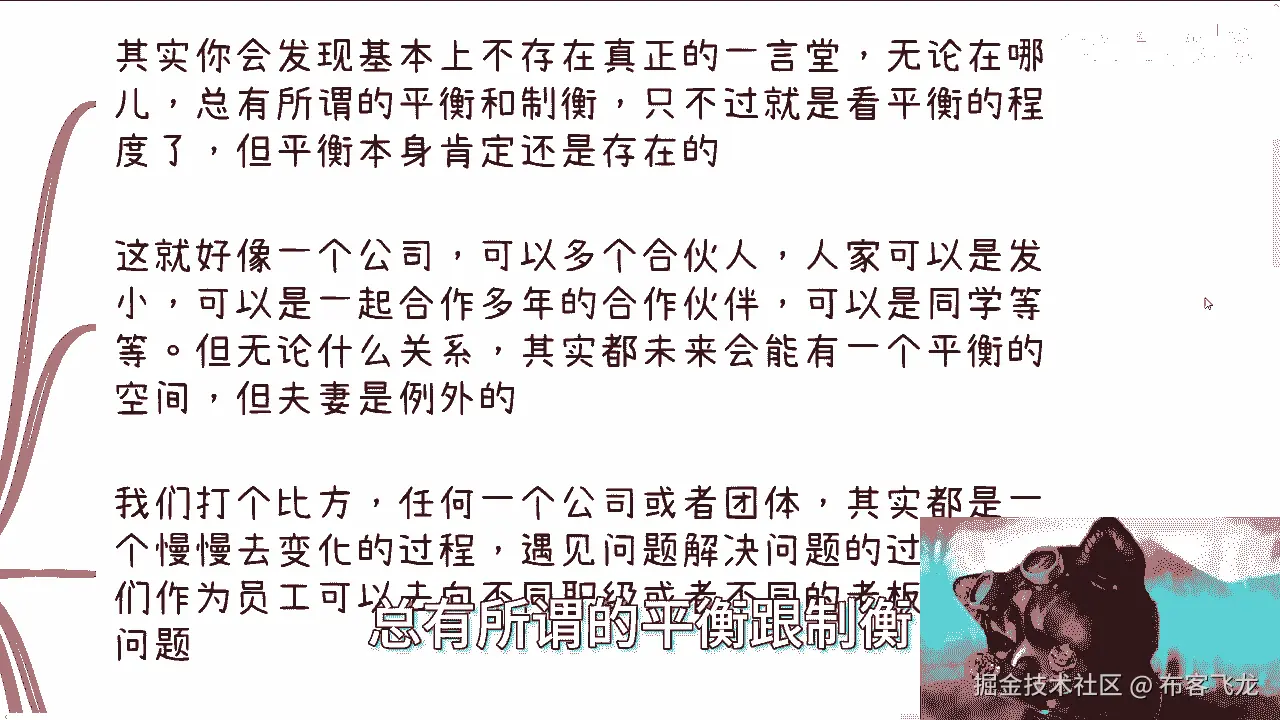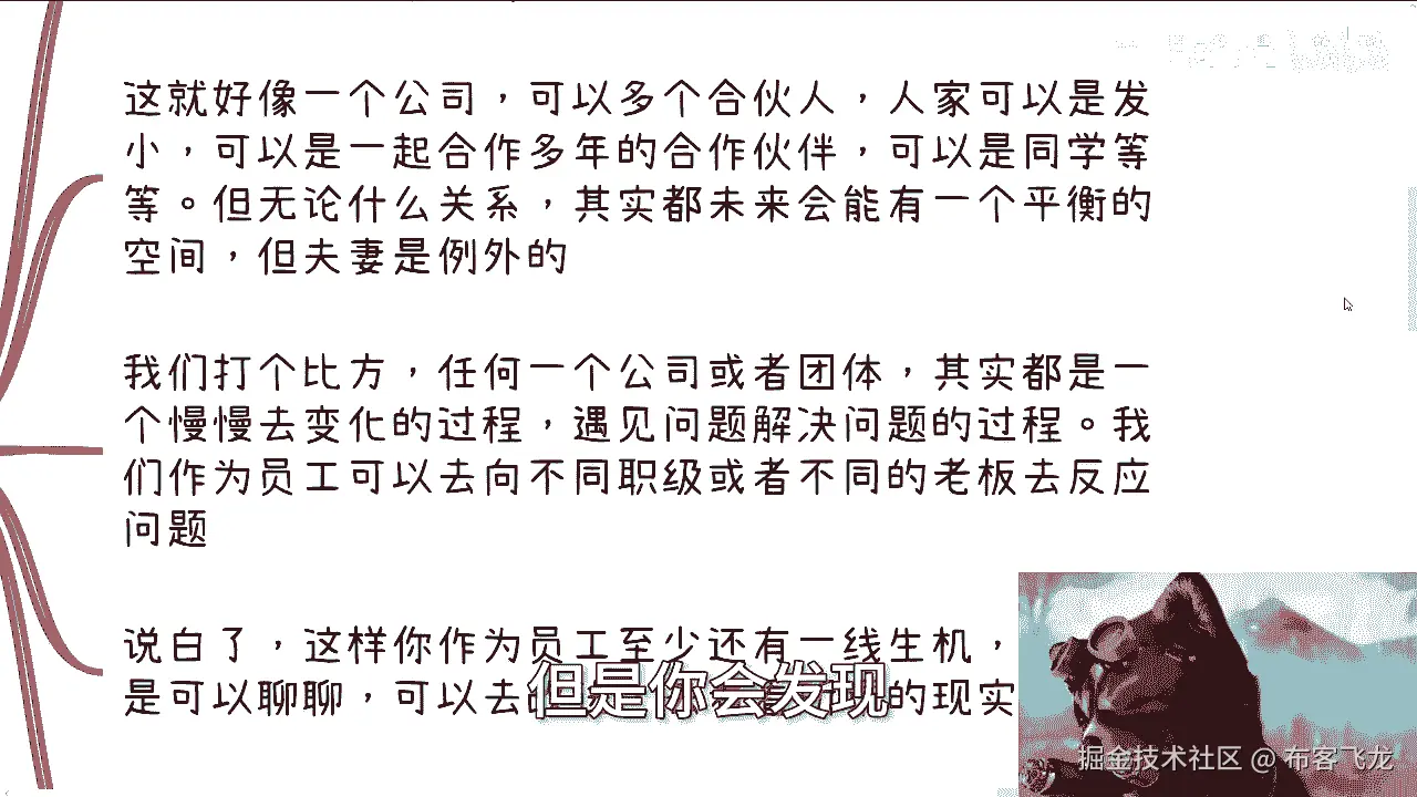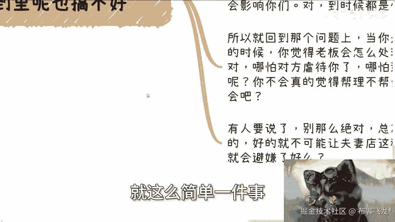 但是夫妻店就不一样,夫妻店就变成了什么,这事就变成了原本的一个平衡,它就根本就不存在了对吧,因为你夫妻店他就是一个一言堂,他就是一个人,你跟他谈什么东西呢对吧,你跟谁谈不是谈,但是你不能跟夫妻去谈啊。