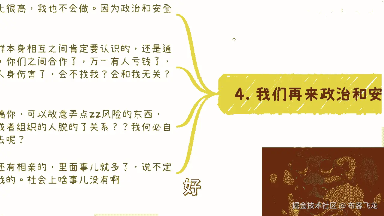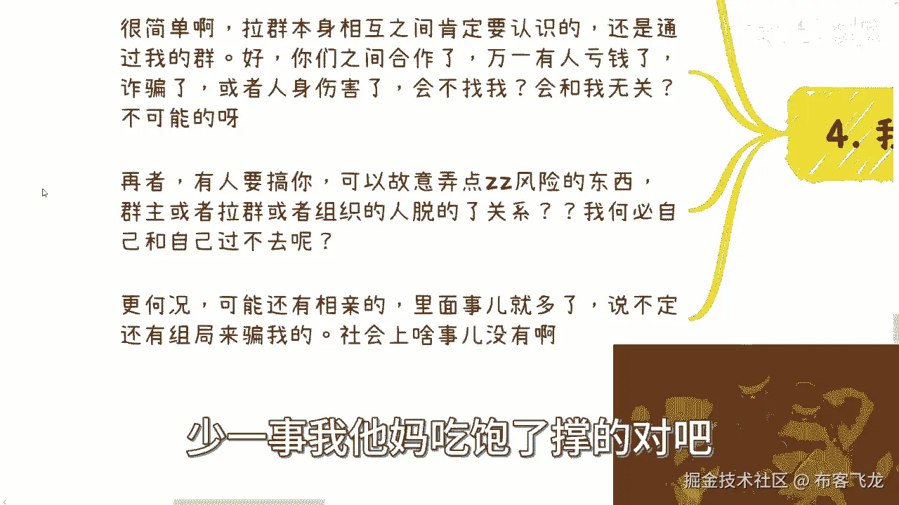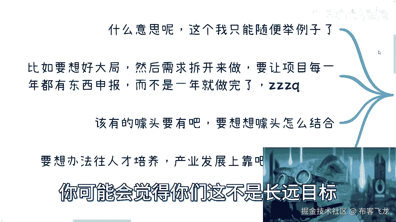 然后最后一点也是最重要的最最最最重要的啊,我不能多说了,多说他妈的切是吧,懂得都懂啊,什么意思呢,这个我只能随便举例子啊,比如说要想好大局,什么意思啊,就是你今天要去给别人做项目啊,要你要想好大局。