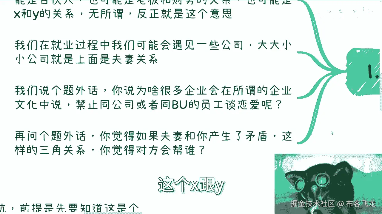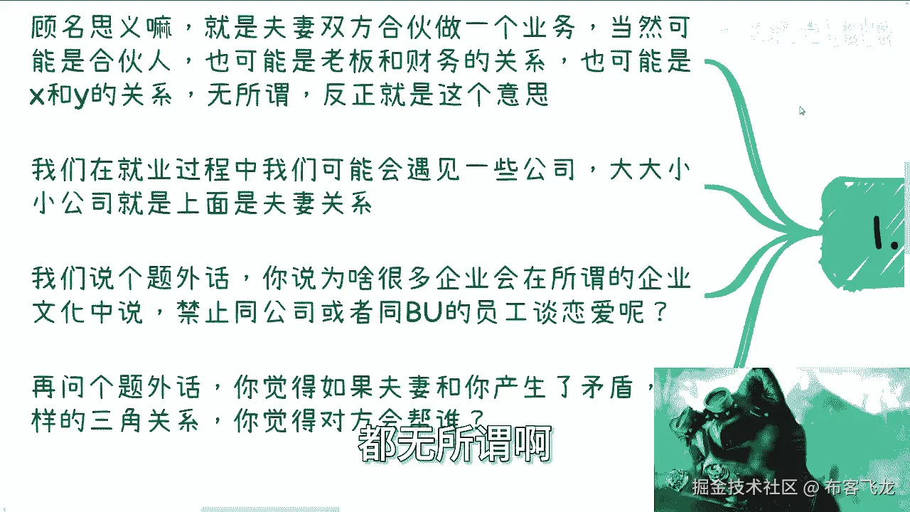 呃我们说个题外话啊,你说为啥很多企业啊,会在所谓的企业文化当中啊,嗯提到一点,就是说禁止公司或者同一个这个business的啊,这个员工谈恋爱呢,对不对,你们想想看啊,你想想看对吧,就算他没有明文规定。