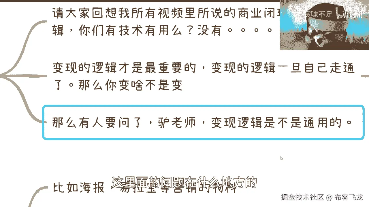 就是比如说商业逻辑或者说商业变现,商业的一些模式都会讲的,但是你们要明白一点,第一他们讲的很多东西,无论是谁培训,这个东西一定是落后于现在的对吧,因为现在时代发展太快了,一定是落后于现在的。