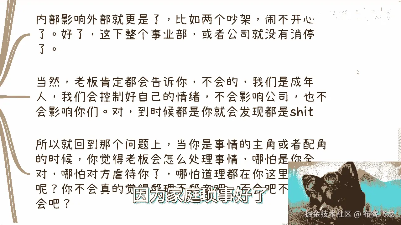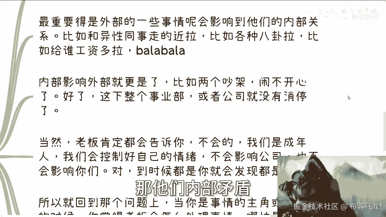 所以回到那个问题上面,当你是这件事情的主角或者配角的时候啊,你觉得老板会怎么处理这件事情,就是什么意思,就是说如果当今天有就是闹闹了矛盾,你呢是一个当事人,或者可能是一个当事人的配角,那你就想想你。