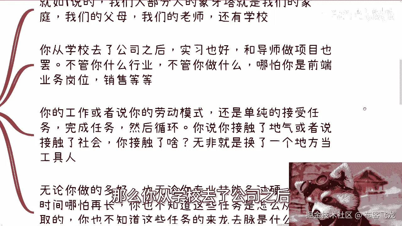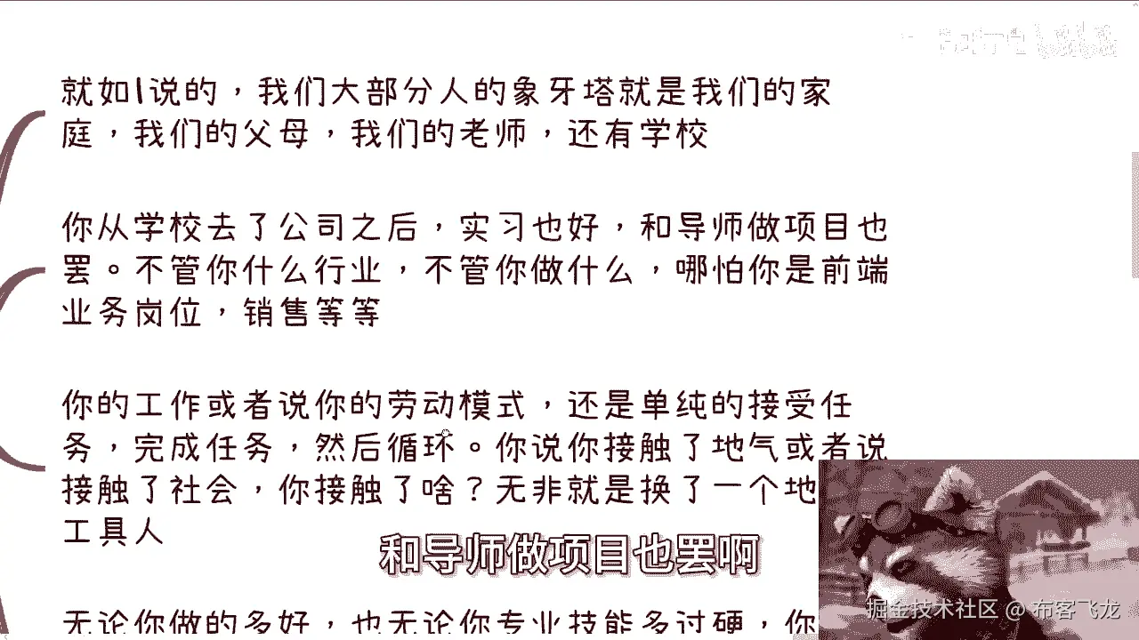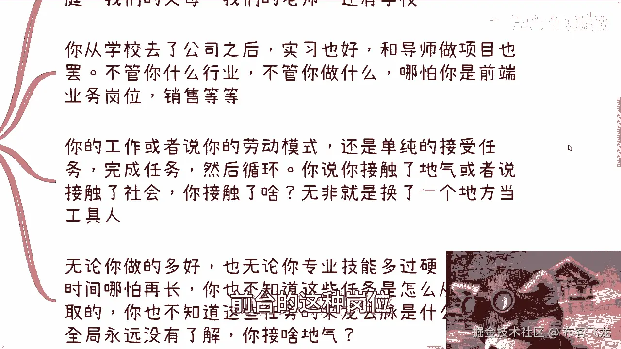 请你在一家企业会叫吗,不会吧,你今天就算在家会交公司不会会教你吗,不会的,因为为什么,因为你就是个打杂,你就是个螺丝钉就结束了,你知道吗,这也是为什么我跟你们讲,学校跟企业里面,你们学不到任何东西。