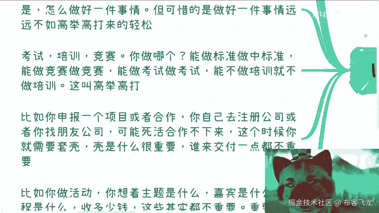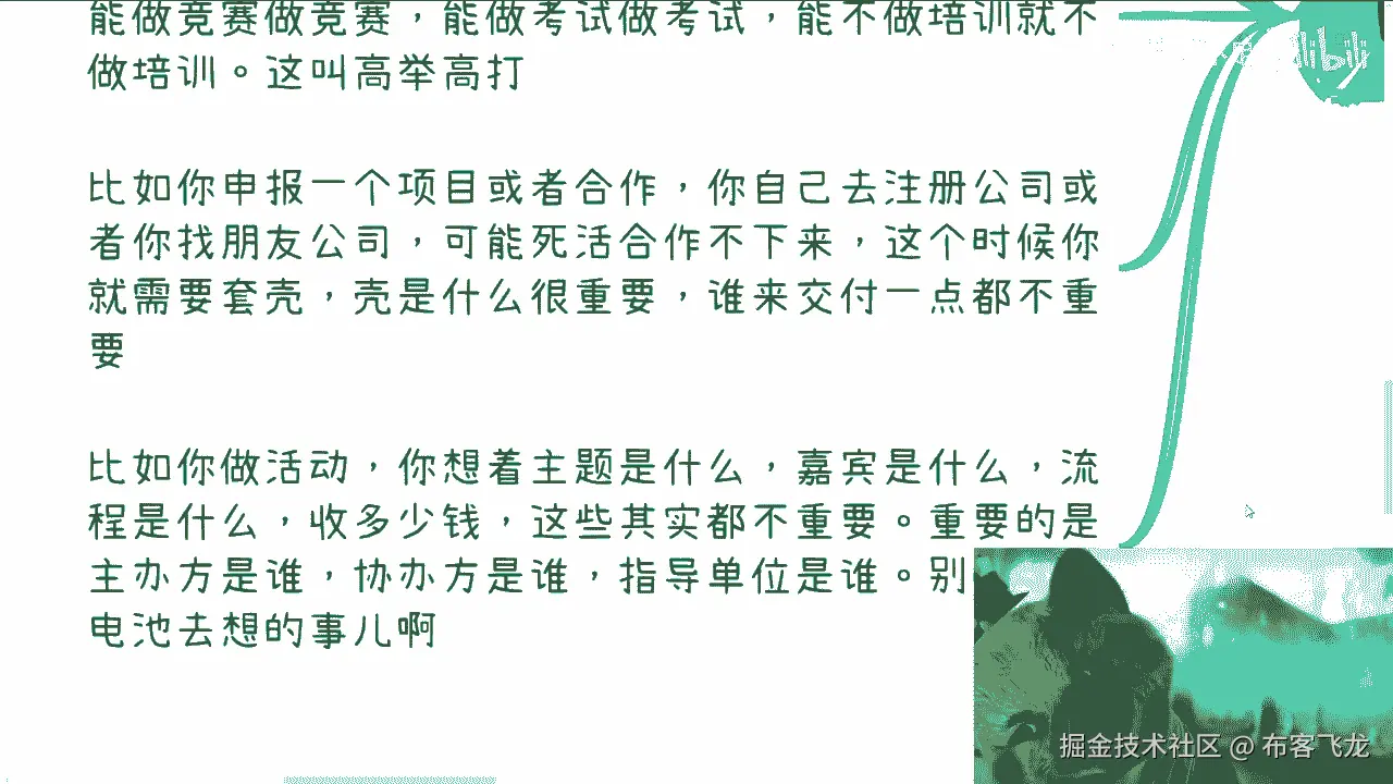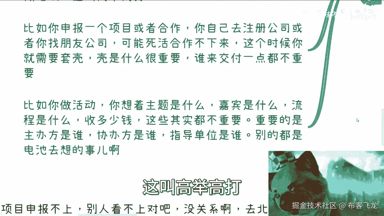 甚至它还落后于法律的更新,对这第一点,第二点是所有的商业逻辑,你听完,你吸收最多也就吸收那么50%甚至更少,而你真正要明白,你必须自己去踩坑,自己去把流程走一遍,那么所以说这个东西不是你们想的。