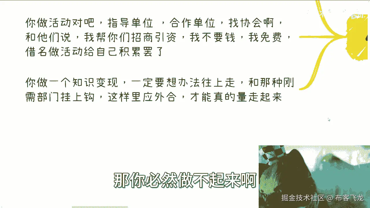 知识变形的屁呀,你真的去做知识变现,就是个韭菜,你知道吧,你就别真的去做知识变现,你别自己真的像个傻子一样说,哎我手上有这些技术啊,这其实这些技术我整理整理我就去变现了。