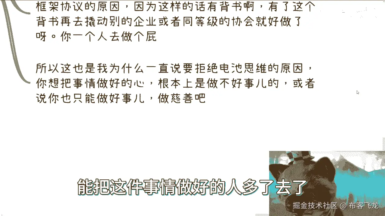 因为其实这些问题没有人关心,而且大部分人关心不关心的原因是,大部分人他压根就不懂他关心什么玩意儿,他只会觉得哦牛逼牛逼牛逼,然后听懂鼓掌没了。