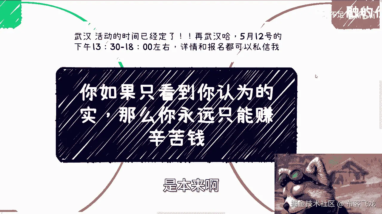 这个主题叫做实和虚的这个问题啊,后来我想了一下,这个主题有点虚,这个主题不是有点虚,有点抽象啊,所以我就把它改掉了,我说你如果只能看到你认为的十呢,那么你永远只能赚辛苦钱啊。