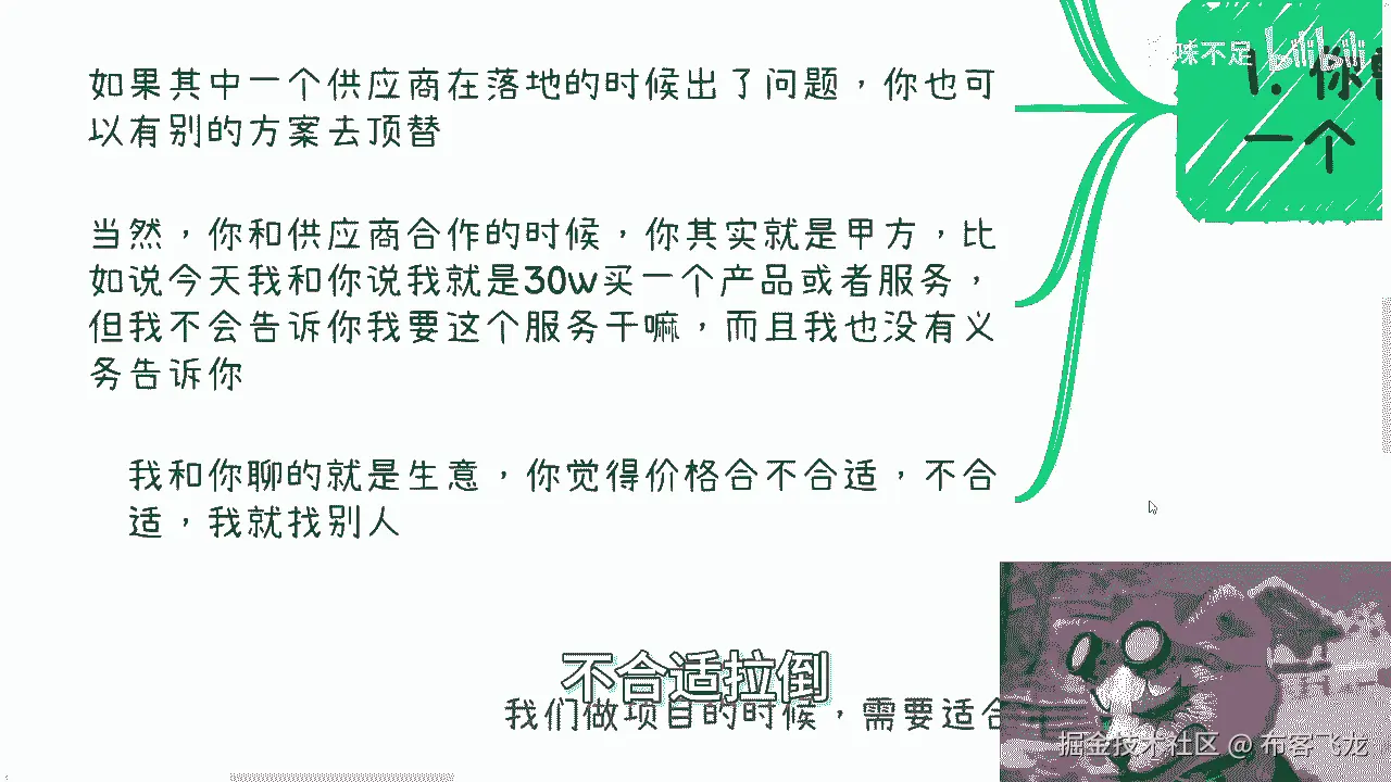 大部分人的甲方呢就已经都已经有供应商了,只不过供应商需要去找合适的人,或者团队来执行,那么这个时候就是就是你我啊,可以就是趁虚而入,或者说找到了一个突破点的一个地方,那么价格一开始呢可以少谈一点。