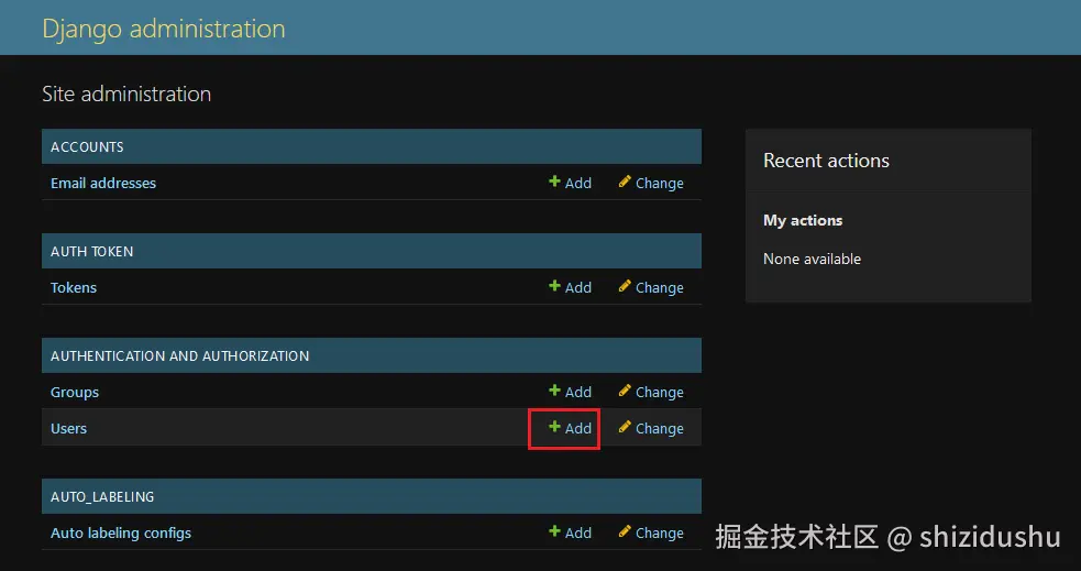 在主网址后加/admin/然后打开ADMIN管理页面(注意后边的斜杠是必须的),点击Add: